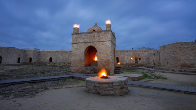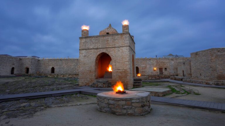 The Absheron Peninsula has two sites associated with ancient fire-worshipping: Yanardag and the Ateshgah Fire Temple. The latter was built in the 18th century by Hindus trading in Baku who deemed the astonishing naturally burning flames here sacred. You can see the last naturally occurring flames flickering away mysteriously on the Yanardag hillside. Visit these places to understand why Azerbaijan is often called ‘the land of fire.’