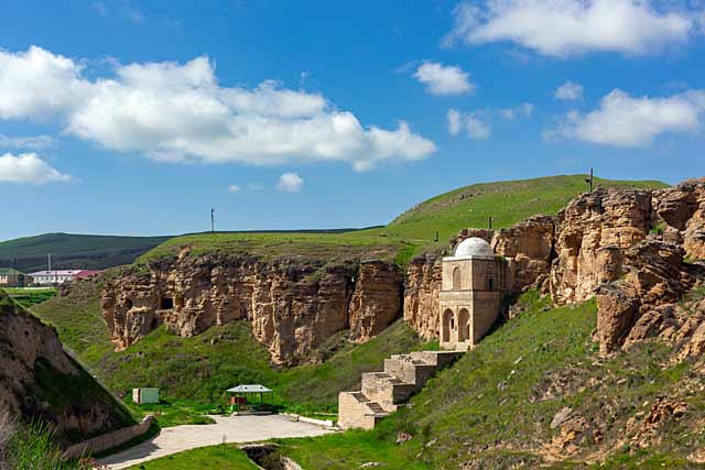 The two-storeyed mausoleum is located opposite an ancient cemetery. It is believed by locals that a sacred person was buried here and remained imperishable. Today, the mausoleum attracts many pilgrims and visitors alike. The mausoleum is “embedded” in a cliff, making it look like hanging in the air.