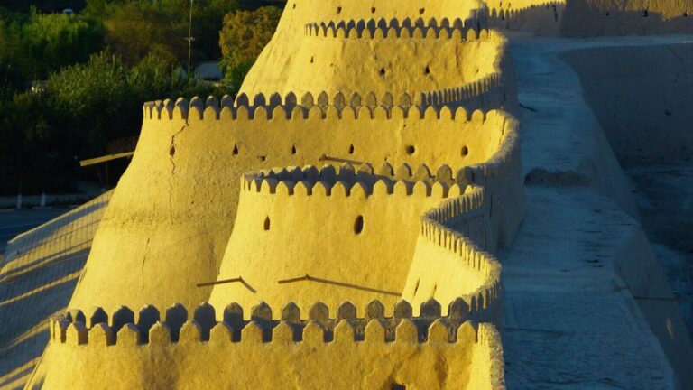 Located in the outer city of Khiva, Dishan-kale, with its splendor, attractiveness, beauty and charm differs from other palaces built by the khans in different periods. During the reign of Muhammad Rakhimkhan, the old city (now Ichan-Kala) became cramped due to the large scale of housing construction and there was no opportunity to build large palaces with gardens. In this regard, Muhammad Rakhimkhan for his sons Mahmud-tyurya and Muhammad-tyurya built country palaces “hauli” (from pakhsov blocks) to the west of the city walls (Ichan-kala).