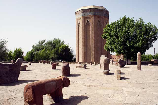 The mausoleum is believed to have been commissioned by Shamsaddin Eldeniz but completed following his death by his son Muhammed Jahan Pahlavan. All three family members were buried inside. Made from burnt bricks, the structure was designed by the celebrated local architect Ajami Nakhchivani and originally stood an impressive 34 metres tall.