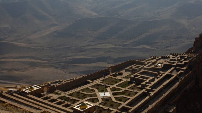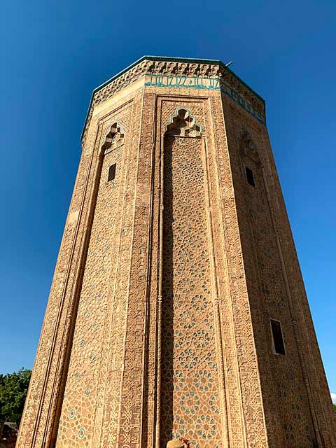 This wonderful 12th century time capsule stands amid a quiet park in the centre of Nakhchivan city, a stone’s throw from the Nakhchivan Khan’s Palace. It reaches 26m tall, leans a little to one side, and is decorated with geometric patterns and majolica-tiled Kufic script which reads “we leave, and only the wind is left. We shall die, but our memory remains”.
