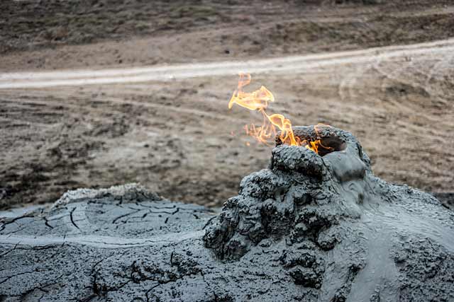 The country is thought to have nearly 400 mud volcanoes and while they never grow to the size of a normal volcano, topping out at around 10 kilometres in diameter and 700 metres in height (among the largest mud volcanoes in the world are Boyuk Kanizadag and Toraghai, both in Azerbaijan), they do occasionally get the chance to show off.